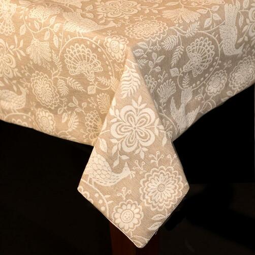 - простоте обслуживания. Пятна на тканевой скатерти выводятся без особого труда;