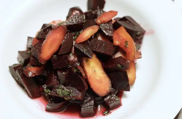 Теплый салат со свеклой и морковью