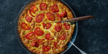 - Можно дожарить омлет на медленном огне на сковороде, а можно отправить на 15–20 минут в духовку. Только в этом случае посуда должна быть огнеупорной.
