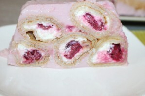 шаг 14. Сверху выложите два рулетика, залейте заливкой.