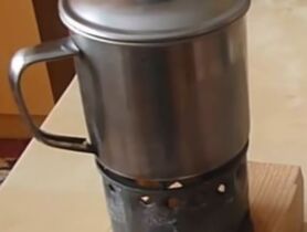 Опытный рыбак демонстрирует свой чайный набор для коротких вылазок на природу. В видео демонстрируется в том числе работа самодельной горелки на сухом горючем.