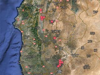 Карта с примерными отметками авиаударов в Сирии, опубликованная на Twitter.com/Radicalenzyme