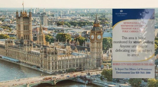 В Вестминстере теперь можно увидеть знаки, предупреждающие людей, что "нельзя испражняться на улицах".