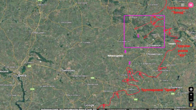 Если расстояние между этими клешнями будет менее 30-40 километров (сейчас - по разным картам около 60-70 км), то это пространство будет насквозь пробиваться дронами РФ, которые, как мы писали, после продвижения российских войск на лиманском направлении, уже начали массово бить по трассе Славянск-Изюм. И фактически оборона северной части Донбасса станет для ВСУ крайне тяжелой задачей, что поставит вопрос о целесообразности дальнейшего удержания этой территории, так как потери обороняющихся украинских сил могут оказаться выше, чем у наступающих войск РФ.