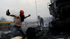 Оппозиционеры начали забрасывать кордоны военнослужащих бутылками с зажигательной смесью на мосту Симона Боливара на границе с Колумбией, передает корреспондент РИА Новости.