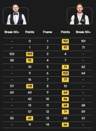 Днем ранее в полуфиналах Трамп обыграл Али Картера (6:2), а Мерфи разгромно победил Нила Робертсона из Австралии (6:1).