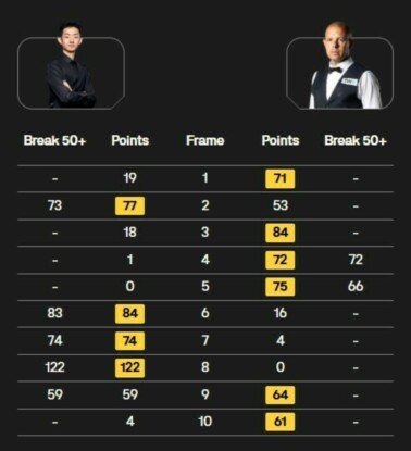 Финальная игра проходит в формате до 9 побед во фреймах (максимум 17 партий).