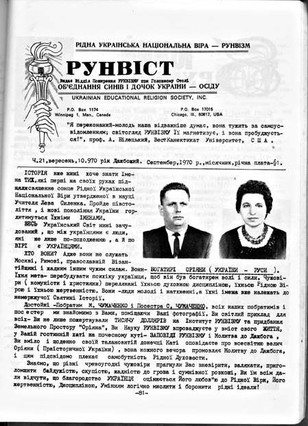 На самом деле, РУН-вира отнюдь не сборище клоунов. Основателем секты стал бывший гауптштурмфюрер дивизии СС «Галичина» Лев Силенко, награжденный немцами за усердие в карательных операциях Железным крестом 2-й степени и знаком за борьбу с партизанами.