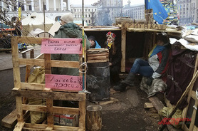 На столичном евромайдане назревает скандал. Митингующих вот-вот рассорит портрет Юлии Тимошенко на недостроенной новогодней ёлке.