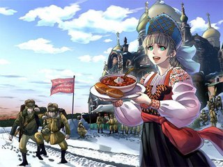 Русские едят много мяса, а также любят сахар, масло, хлеб и картофель. Рыбу же русские совершенно не любят – в магазинах её даже не продают. Поэтому немногочисленные любители рыбы покупают её на рынке. Вероятно, рыбу русским заменяет икра. Благодаря такой еде, русские крупнее японцев и очень сильны физически.