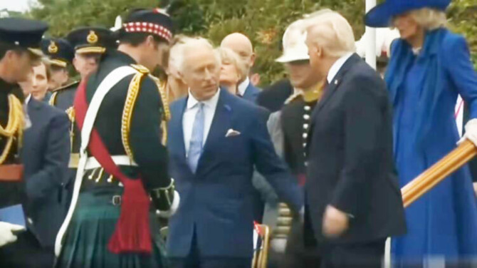 Западные издания отмечают, что Трамп вторично проявил неуважение к Чарльзу: в ходе приветственной церемонии президент оставил короля идти позади, предпочтя общение с гвардейцем.