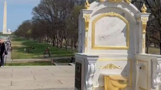 В Вашингтоне поставили огромный золотой унитаз для Трампа
